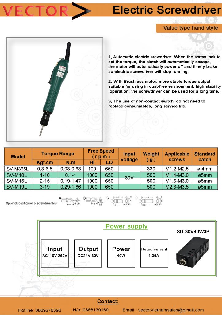 1.Tô-vít điện công nghiệp toàn tự động: Khi con vít được siết đến lực siết được đặt trước, tô-vít sẽ tự động ngưng siết và motor của tô-vít sẽ tự động ngắt điện. Tô-vít sẽ được ngắt hoàn toàn. Điều này đảm bảo các yêu cầu về lực siết của khách hàng. Không làm hỏng sản phẩm do siết thừa hay thiếu lực.